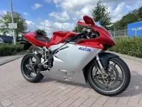 Die MV Agusta F4 750 von 2001 ist ein Meisterwerk italienischen Designs, entworfen unter der Leitung von Massimo Tamburini. Dieses Exemplar in Rot und Silber hat nur 1.180 km Laufleistung und befindet sich praktisch im Neuzustand. Mit den originalen Handbüchern, zwei Schlüsseln und niederländischen Papieren ist alles komplett. Vor Jahren aus einer privaten Sammlung erworben, wo sie im Wohnzimmer stand, und nie verändert oder daran gearbeitet wurde. Ein echtes Sammlerstück in unberührtem Originalzustand.