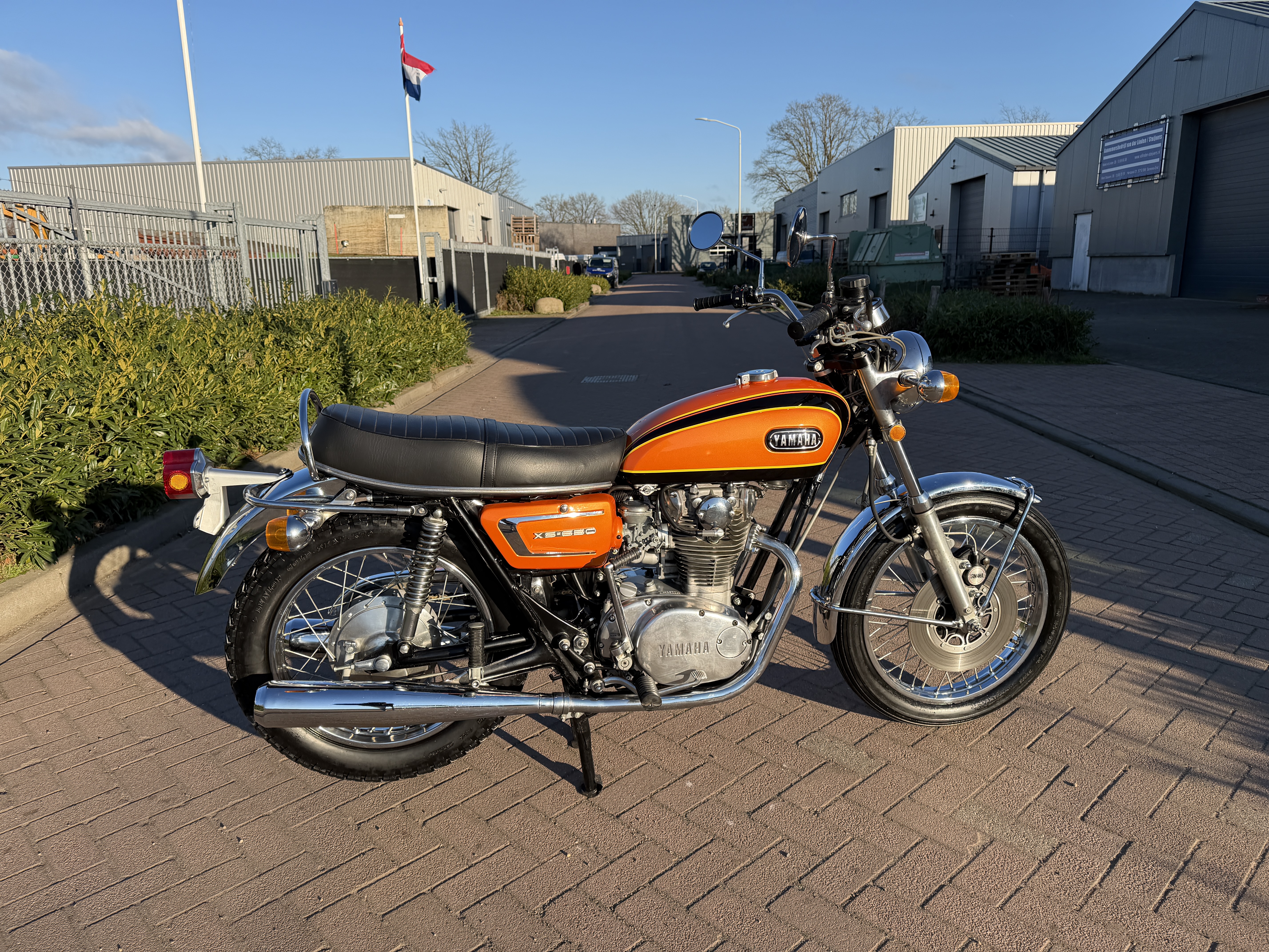 De oranje kleur en het klassieke lijnenspel maken deze Yamaha tot een echte blikvanger. Een tijdloos ontwerp dat nog steeds indruk maakt.